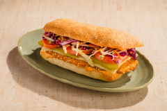 Crispy chicken schnitzel, pepper jack cheese, Israeli pickles, tomatoes, slaw, spicy aioli on ciabatta